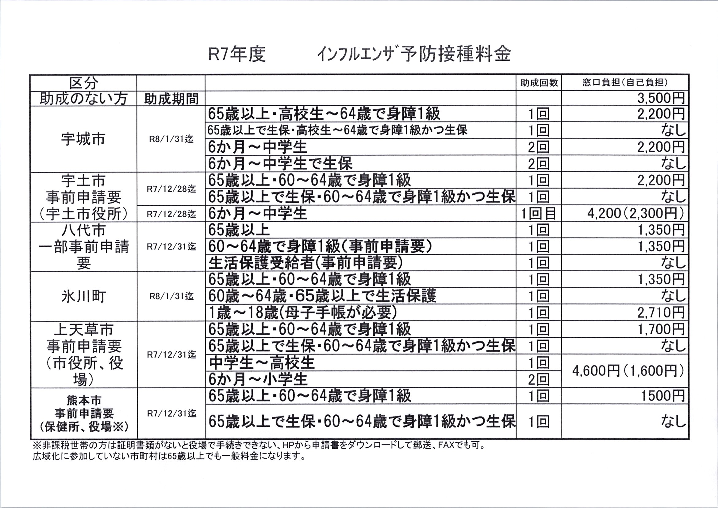 同日はインフルエン予防接種も行います。自治体からの助成がない場合は、3,500円(税込み)です。助成額については各自治体にてご相談ください。