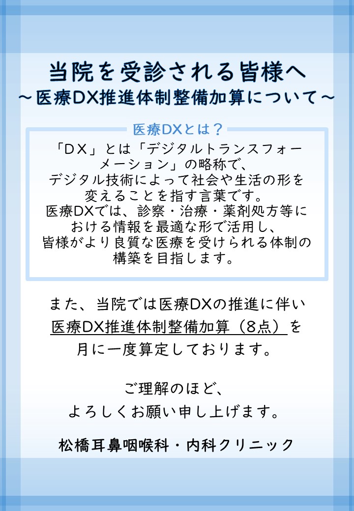 | 施設名 | 松橋耳鼻咽喉科・内科クリニック |