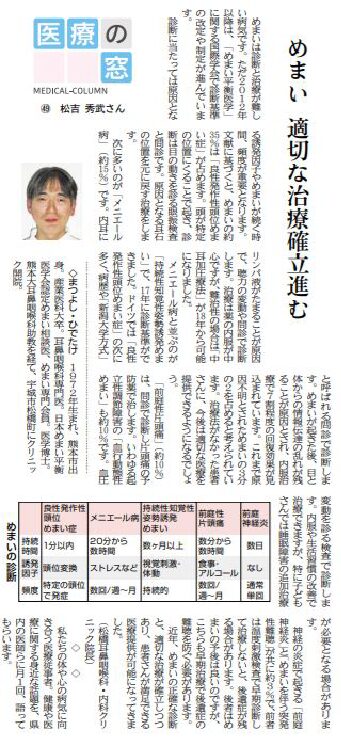 熊本日日新聞「医療の窓」