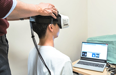 頭を動かした際の眼の動きを専用ゴーグルで計測します。強いめまいを誘発せず、体への負担が少ない三半規管の検査です。